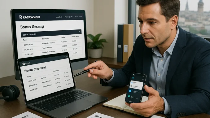 Raxcasino bonus geçmişi ve kullanım takibi, hem kazançlarımızı korumak hem de promosyonlardan maksimum faydayı sağlamak için kritik. Bu rehberde, Raxcasino’da sunulan bonus türlerini tanımlıyoruz, hesap geçmişinde bonusları nasıl bulacağımızı gösteriyoruz ve kullanım takibini kolaylaştıracak araçlar, prosedürler ile iyi uygulamaları paylaşıyoruz. Amacımız, her bonusun şartlarını anlayıp gerektiğinde kanıt üretebilecek şekilde düzenli kayıt tutmamıza yardımcı olmak.